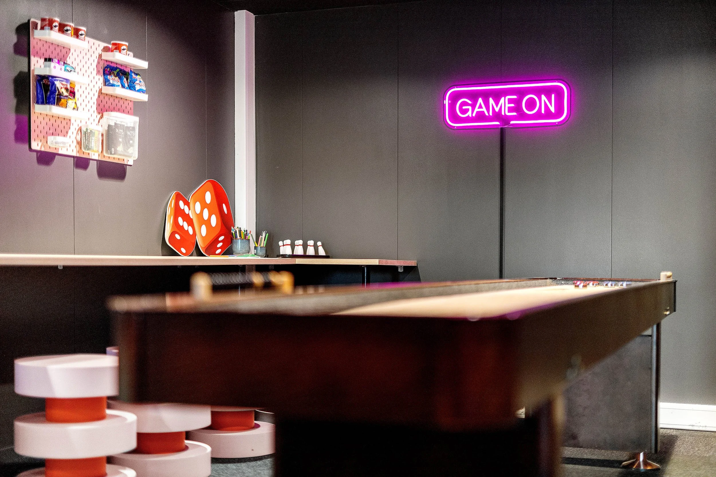 When you enter the hotel, you are greeted by a spacious lobby with a game zone where you can unwind with shuffleboard or board games. In the lounge, you can enjoy a glass of wine or beer after a long day of work, travel, or sightseeing.